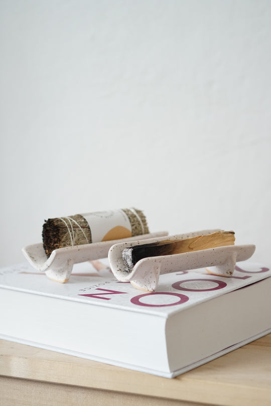 Ručně vyráběný keramický stojánek na vykuřovadla. Každý kus je originál a nese jedinečné otisky řemeslné práce. Vyrobené jsou v keramické dílně v jizerských horách.